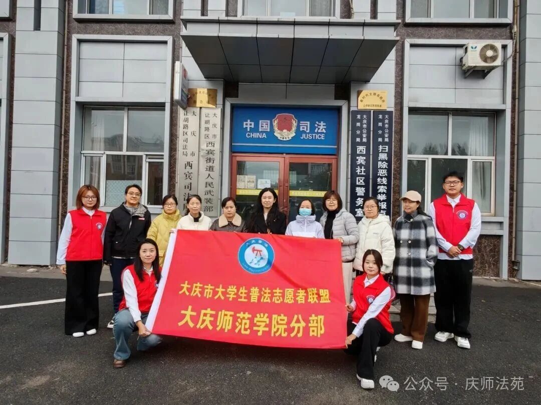 为深入学习贯彻习近平总书记关于老龄工作的重要指示批示精神,全面贯彻落实党的二十大和二十届三中全会精神,实施积极应对人口老龄化国家战略,弘扬中华民族孝亲敬老传统美德,引导广大青年志愿者在为老服务中担当作为,营造养老孝老敬老良好社会氛围。根据共青团大庆师范学院委员会的文件要求,2025年10月17日下午,法学院团委书记杨郁婷带领法学院志愿者、大庆市大学生普法志愿者联盟大庆师范学院分部志愿者共同走进银亿社区公共法律服务中心开展为老服务“金晖活动”。