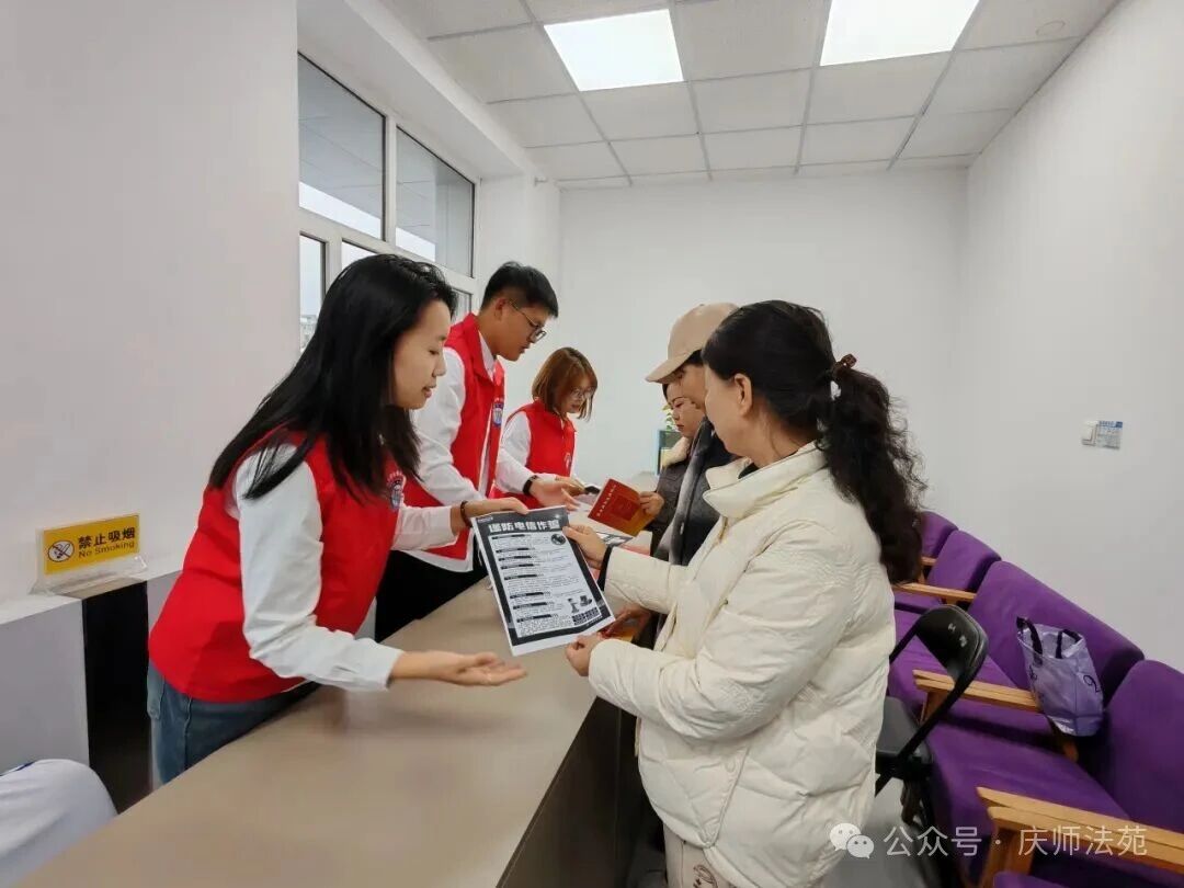 在普及宣传环节,杨老师以“防范养老诈骗”为重点,结合真实案例讲解社会一系列常见骗局,通过情景模拟、互动问答等方式,教授老年人如何做到精准防骗,同时借用新媒体平台,有效破除银发群体认知屏障,切实保障老年人权益。