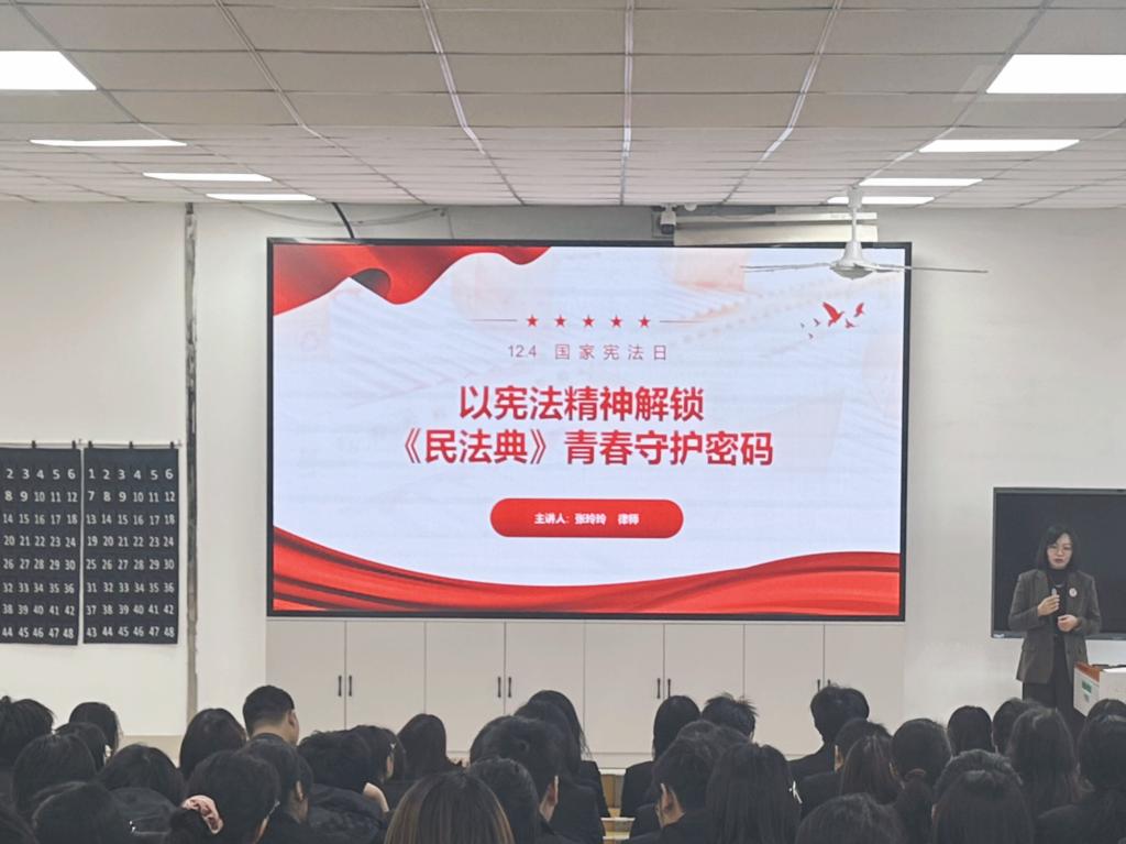 12月4日上午,法学院于主楼2-1教室顺利开展“以宪法精神解锁《民法典》青春守护密码”普法讲座。本次活动由黑龙江省法学会、大庆市法学会、大庆市司法局联合主办,大庆师范学院法学院承办。本次讲座特邀黑龙江典通律师事务所副主任、高级合伙人张玲玲律师担任主讲人,并邀请全校各院系、各年级同学代表参加,旨在面向大学生群体开展精准、鲜活的法治宣传教育,提升青年学生的法律意识和自我保护能力。