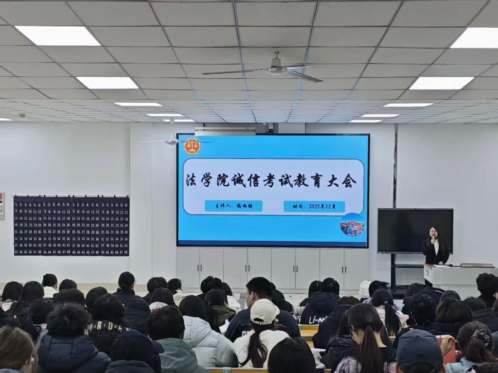 为营造公平公正、诚实守信的考试氛围,扎实推进学院学风建设,引导学生树立正确价值观,高效备战期末考试,12月10日、11日法学院召开诚信考试教育大会,辅导员陶雨朝老师担任主讲人。