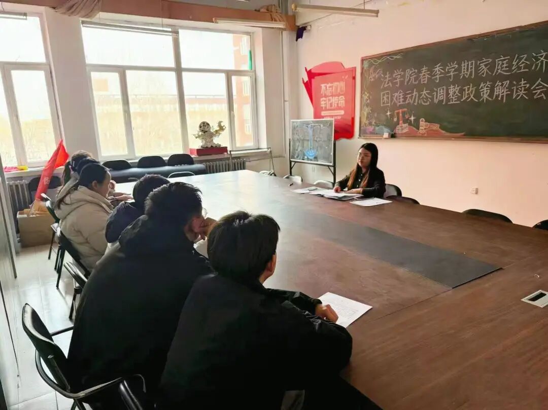 为切实做好春季家庭经济困难学生的精准认定与动态调整工作,确保资助政策落地落实,法学院组织召开春季学期家庭经济困难学生认定管理动态调整政策解读会,辅导员陶雨朝主讲。