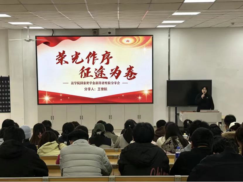 为充分发挥优秀学子榜样引领作用,营造勤学善思、笃行奋进的优良学风,帮助同学们明确学习目标、掌握高效学习方法,法学院于4月23日在主楼1-4教室举办国家奖学金获得者经验分享会。本次活动由2024-2025学年国家奖学金获奖者李佳、王誉航担任主讲人。