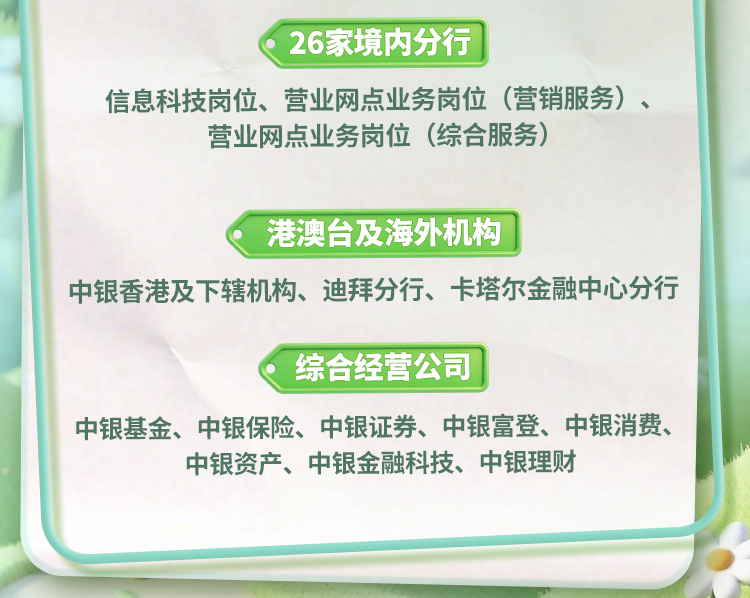 转载自:中国银行人才招聘公众号(如有侵权,请联系删除)