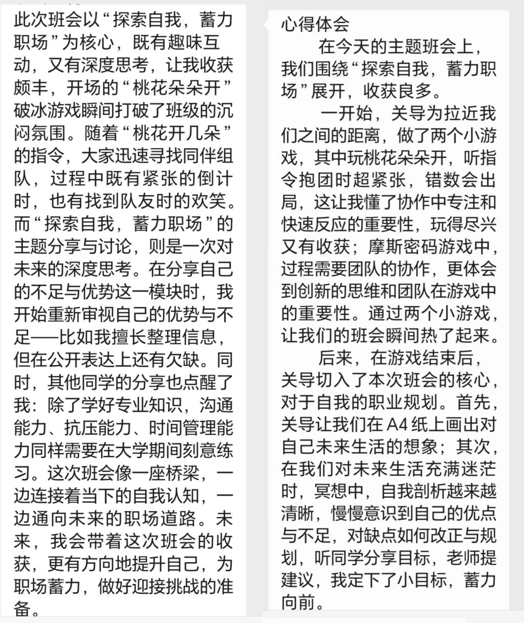 这场融合心理辅导柔性力量与职业规划刚性框架的沙龙,不仅让学生在互动中完成自我认知迭代,更以“以心赋能、以行聚力”的育人实践,为青年学子在职业成长坐标系中锚定方向,让探索自我的微光汇聚成蓄力职场的星河。