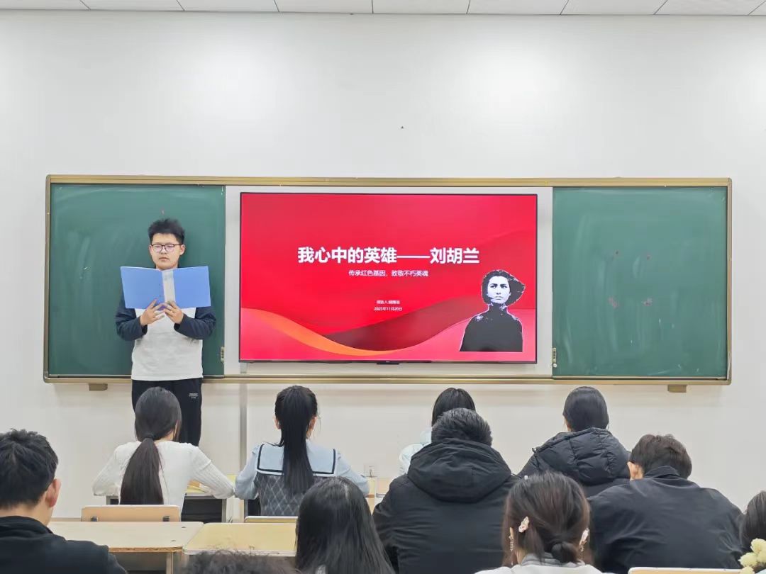 在“我心中的英雄”主题故事分享会上,同学们走上讲台,动情地讲述了自己心中英雄的故事。从面对敌人侧刀毫无畏惧、以年仅15岁的生命铸就“生的伟大,死的光荣”不朽丰碑的刘胡兰,到身陷日寇魔掌、受尽酷刑仍高唱《红旗歌》英勇就义的抗日英雄赵一曼;从身患重疾仍扎根兰考、带领群众与内涝、风沙、盐碱“三害”顽强斗争直至生命最后一刻的县委书记榜样焦裕禄,到在冰天雪地、弹尽粮绝的极端环境下,只身与敌周旋、战斗至最后一息的东北抗日联军主要创建者和领导人杨靖宇……一个个基于史实的生动讲述,让英雄的形象愈发真切而伟岸。这场分享会不仅是一次故事的分享,更是一次跨越时空的精神对话,让同学们深刻领悟到英雄们坚定的理想信念与视死如归的献身精神,并立志将这份精神血脉融入未来的法治事业中。